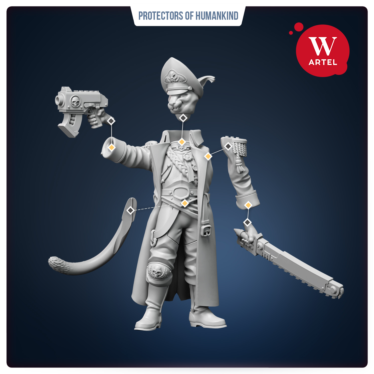 Рядовой Киттикин и Комиссар Шлепа пришли из отряда кошколюдей, тех самых, кого имперские рекрутеры сперва считают милой легендой, а потом видят в бою и больше не улыбаются. Их миры грызёт тёмный космос, из которого приходят угрозы без лиц и без жалости, и потому эти двое держатся за людей так, будто защищают не чужую расу, а последний костёр среди вечной ночи. Комиссар Шлепа носит свою должность как маску и как мем одновременно, суровый взгляд, тяжёлые слова, железная дисциплина, а в тылу шепчутся, что если он молчит слишком долго, значит «Шлепа задумался» и кому-то скоро станет очень плохо. Его присутствие действует на бойцов как знамя: ведь это не считается геноцидом, если враг — это мерзкий пришелец и тем более не будет чем-то вроде военного преступления, если ты делал это с улыбкой и удовольствием!