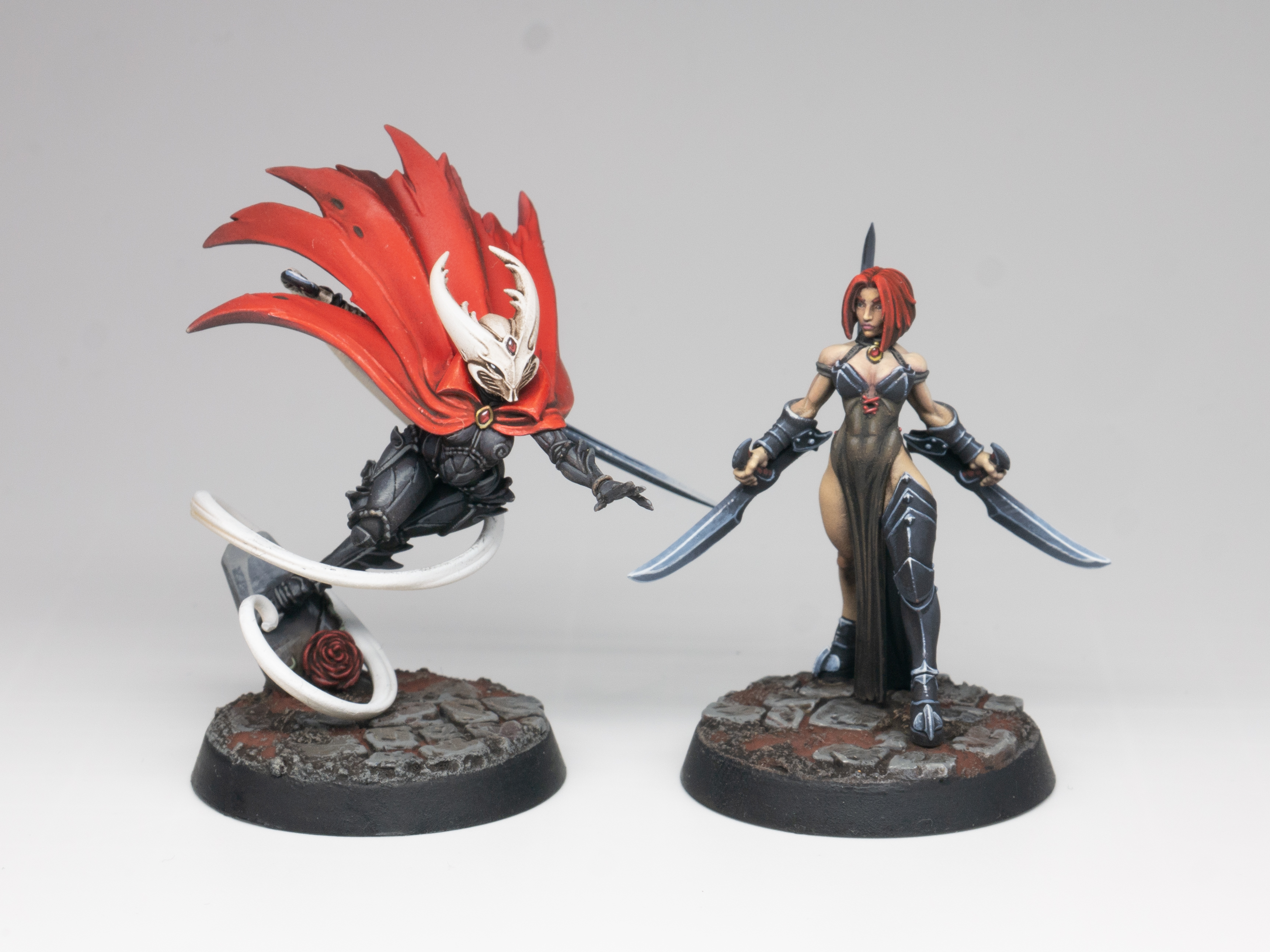 Bloodsilk maiden несёт на плечах тяжесть древней крови, которая должна была стать щитом, а стала бременем, потому что её мир поразило проклятье в облике вируса, и эльфы начали умирать под солнцем, теряя силы и кровь, пока в трещинах общества не проросли запретные культы и пока из подземных глубин не вышли кровавые упыри, обращающие укушенных в неживых слуг. Bloodhex Huntress, напротив, родилась не в родословных, а в лабораторной тьме, выращенная мутациями и жестокими обрядами, и её проклятье стало источником силы, кровавой жаждой, которая дарит могущество, но лишает свободы, превращая её в оружие, едва удерживаемое волей. Одна видит в проклятии катастрофу и причину падения империи, другая чувствует в нём роковую силу, губительную, но обещающую власть, и потому их союз с самого начала скован одной цепью, только звенья этой цепи для каждой звучат по-разному.