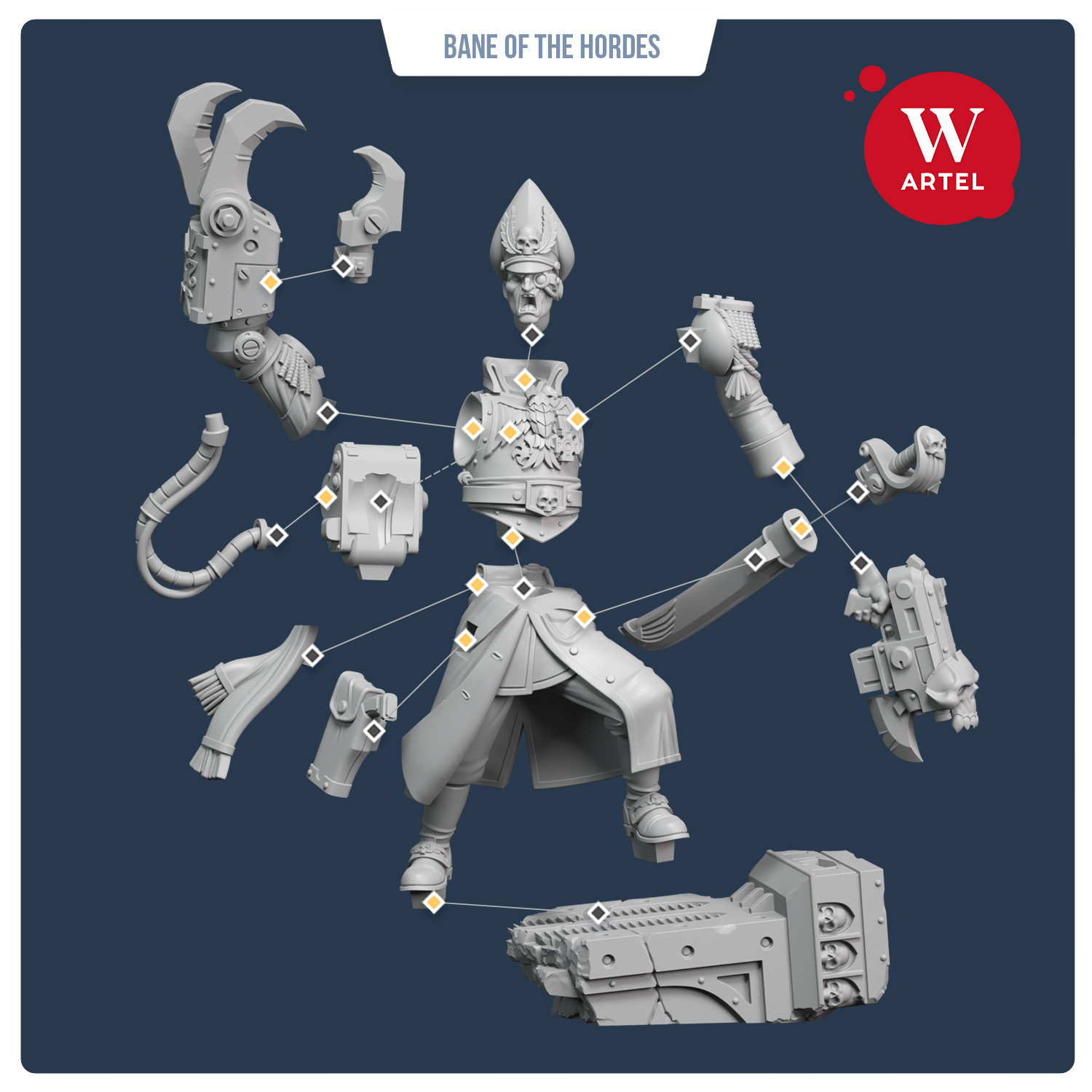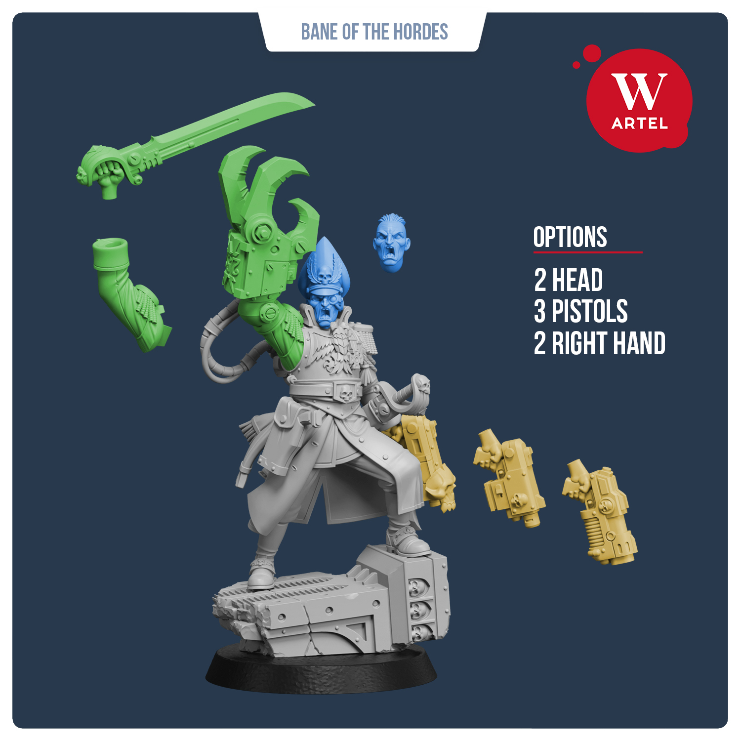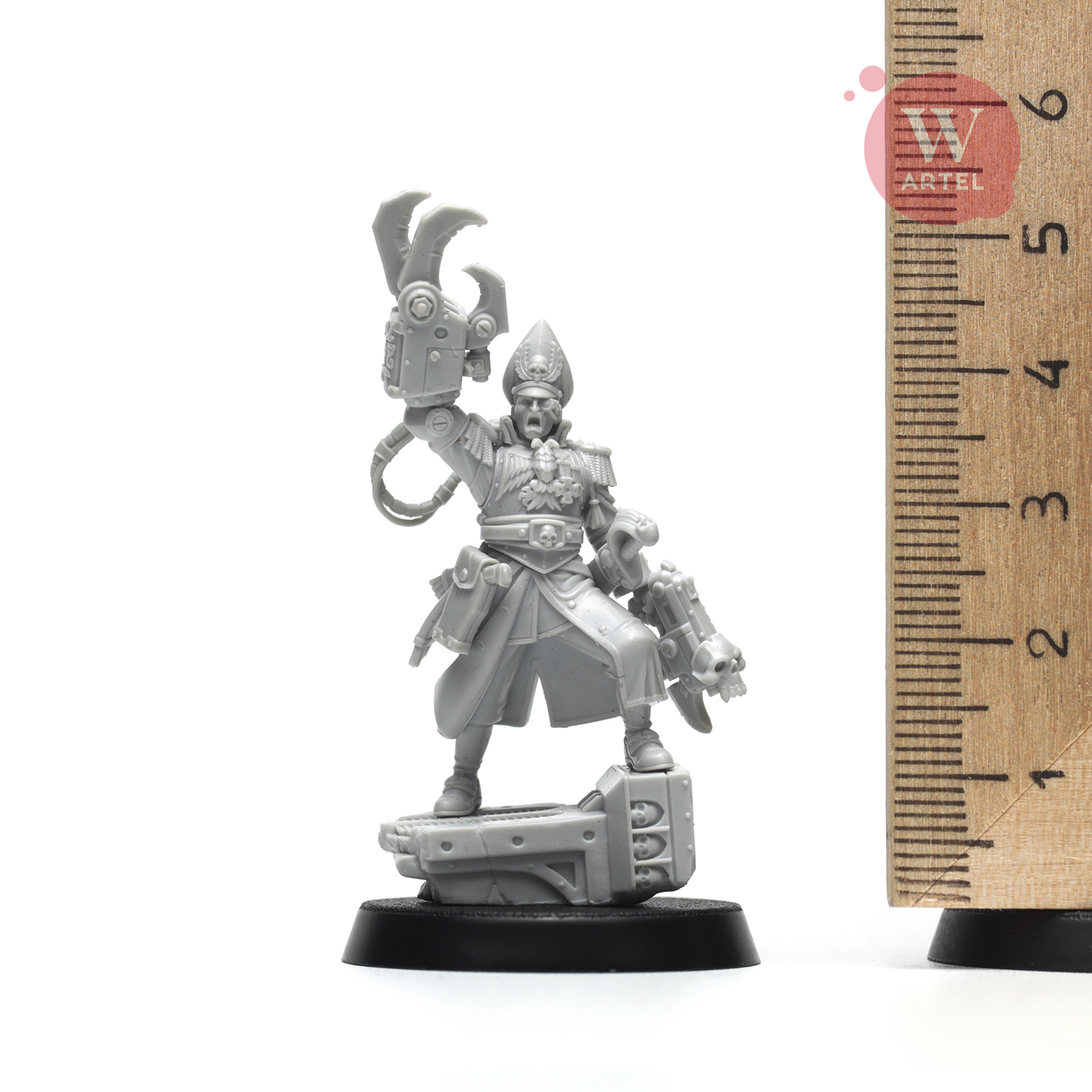 Миниатюра органично смотрится в армиях и сценариях мрачной научной фантастики, а также станет выразительной центральной фигурой в диораме: мостик осаждённого города, траншея под артобстрелом или лестница командного бункера — выбор за вами.
